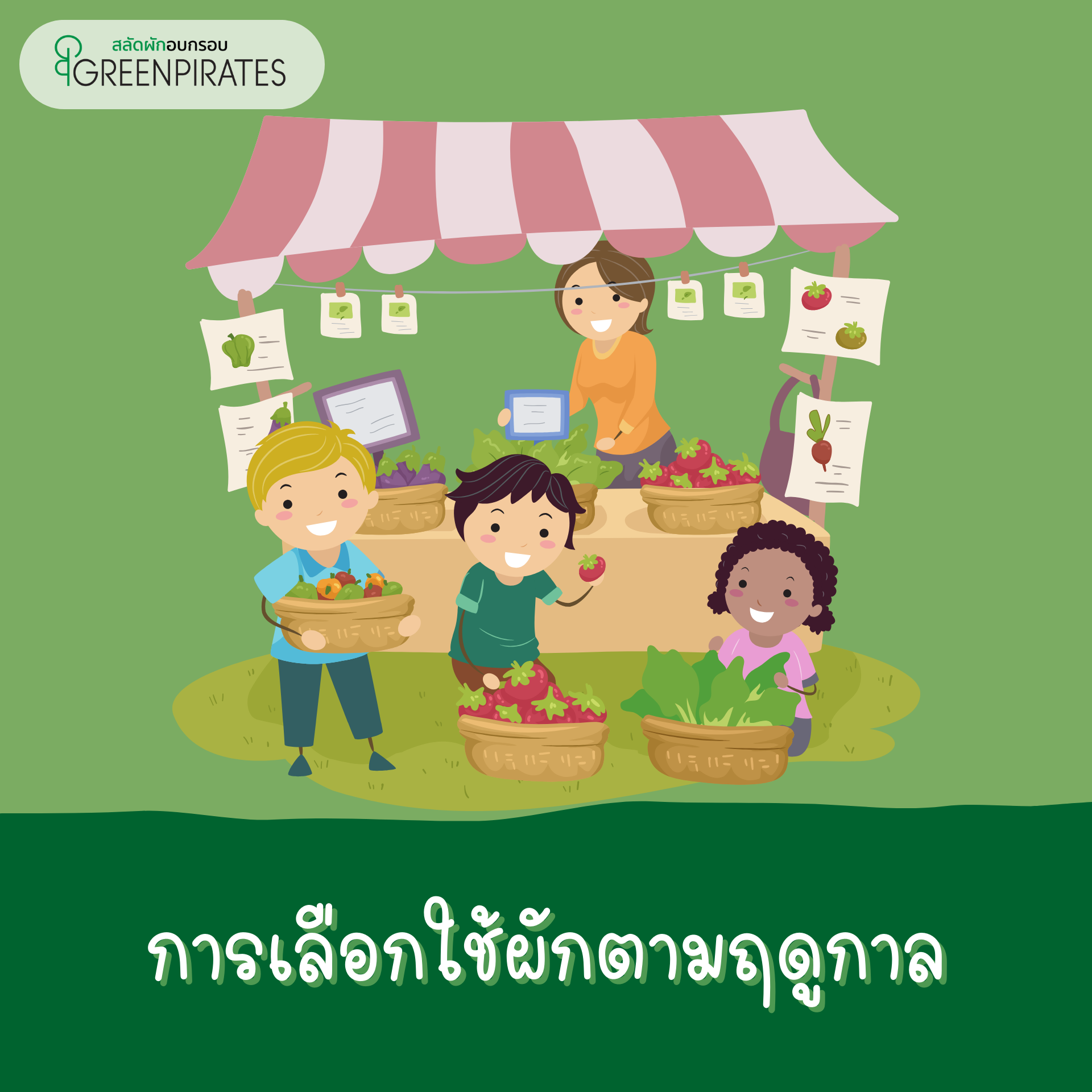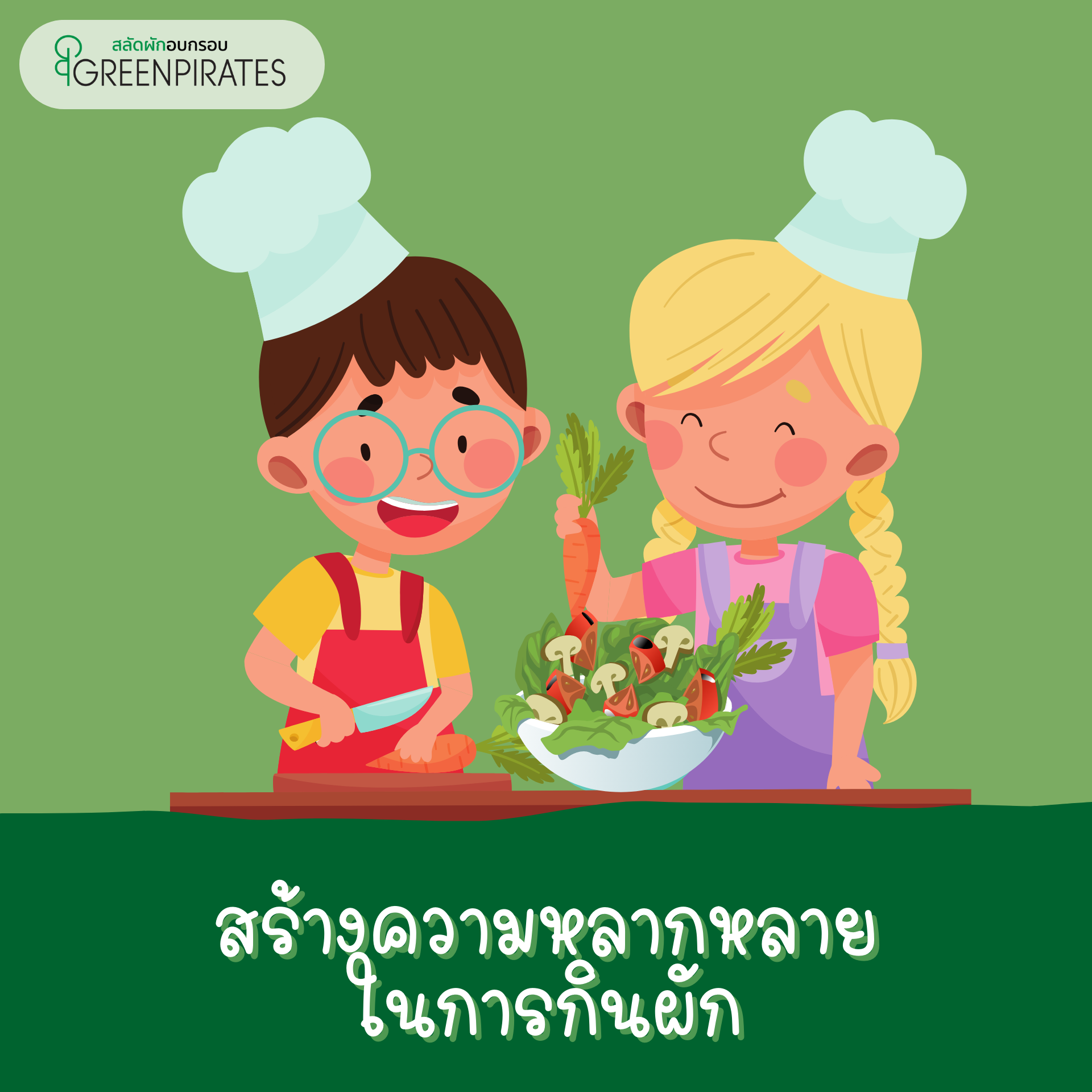 เราตั้งใจให้สลัดผักอบกรอบของเราเป็นตัวเลือกที่เติมท้องให้อิ่ม เติมความอร่อย และสามารถเติมประโยชน์ให้ทุกครั้งที่ได้รับประทาน นี่จึงเป็นจุดเริ่มต้นของสลัดผักอบกรอบ GreenPirates เราเลือกสรรผักที่อุดมด้วยสารอาหาร จากแหล่งปลูกที่ได้มาตรฐานปราศจากยาฆ่าแมลงแล้วนำมาคลุกเคล้ากับน้ำสลัดที่เป็นสูตรลับเฉพาะของ GreenPirates เพื่อให้ได้รสชาติที่กลมกล่อม ทานง่าย จากนั้นนำไปผ่านกระบวนการทำที่ให้สลัดผักอบกรอบของเรากรอบด้วยการอบที่ความร้อนต่ำ เพื่อคงไว้ซึ่งวิตามิน แร่ธาตุ และคุณค่าทางโภชนาการ แม้แต่คนที่ไม่ชอบกินผักหรืออยากเริ่มต้นกินผักก็สามารถกินได้ด้วยสลัดผักอบกรอบ GreenPirates