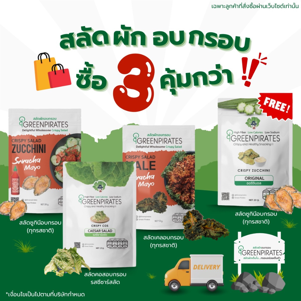 พิเศษสุดๆกับโปรโมชั่นสุดคุ้มเฉพาะลูกค้าที่สั่งซื้อผ่านเว็บไซต์เท่านั้น! เพียงสมัครสมาชิกแล้วกดสั่งซื้อสลัดผักอบกรอบครบ 3 ถุง รับเพิ่มไปเลยอีก 1 ถุง