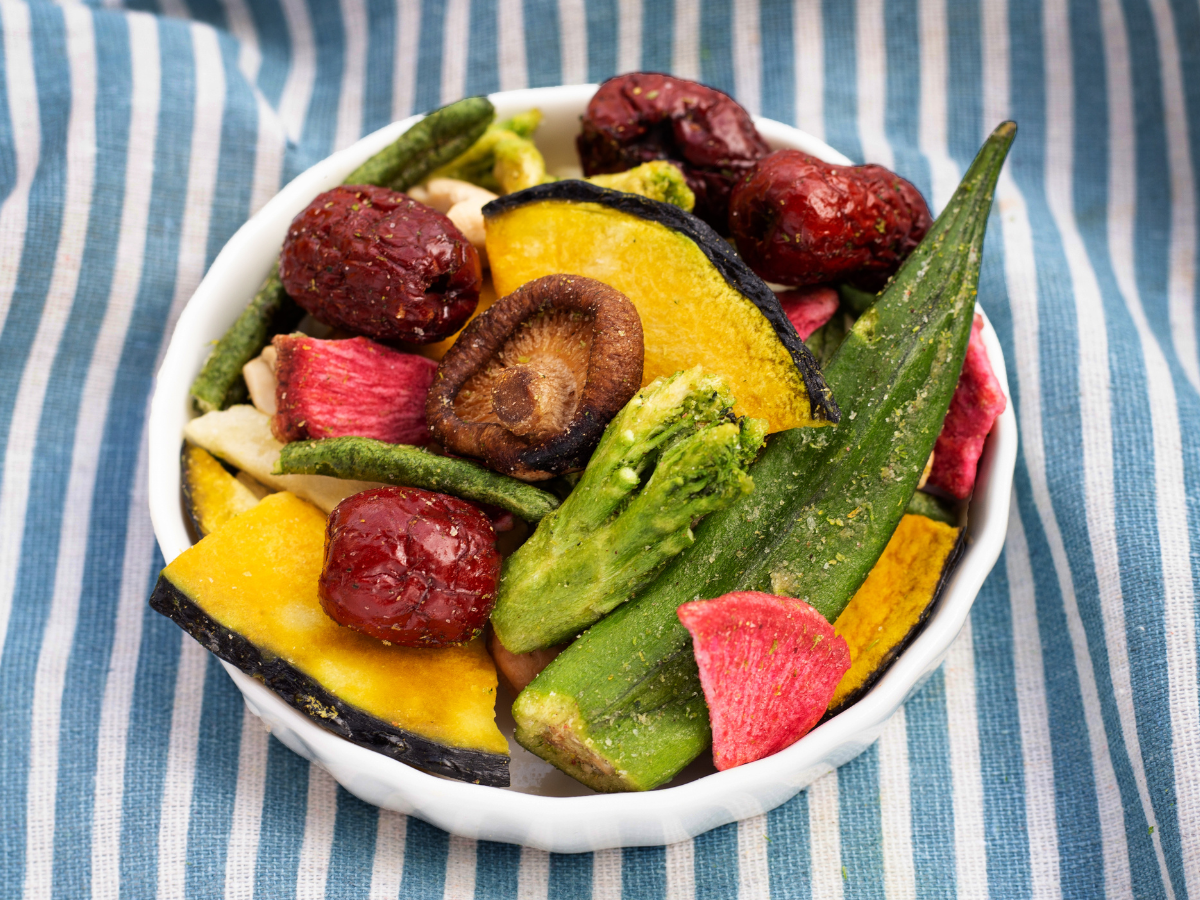 Crisping Process: Crispy Salad are baked at low temperatures to preserve their nutrients. Regular vegetable chips are crisped through different methods, such as freeze-drying, vacuum frying, or dehydration.